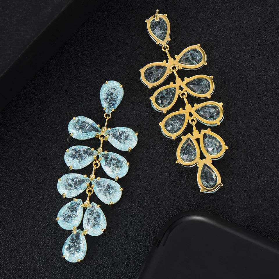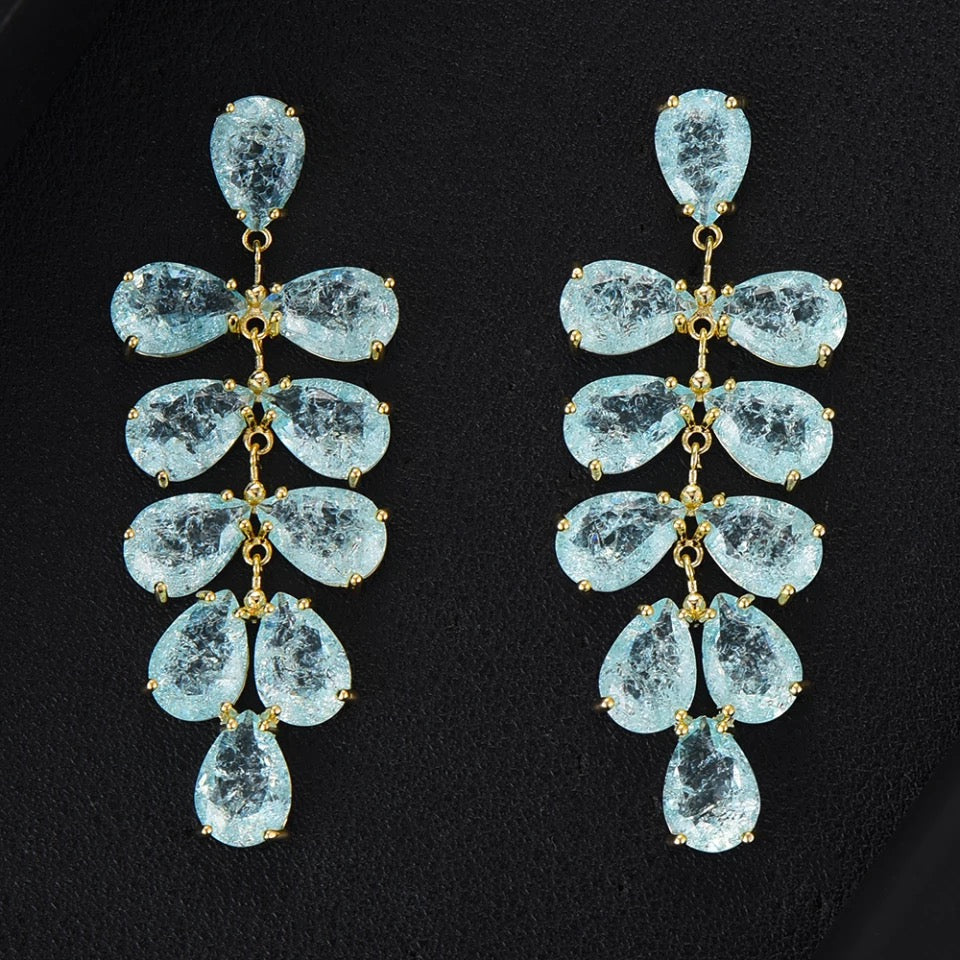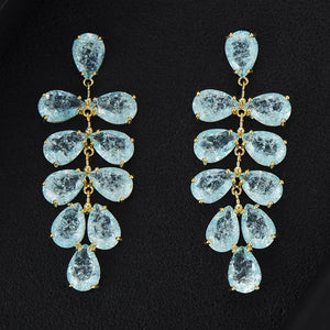 Sparkling in hues of luscious blue, these faceted blue stones hang like delicate drops of water from the breathtaking Cinderella earrings, presenting both an elegant symmetry and a feminine glamour.