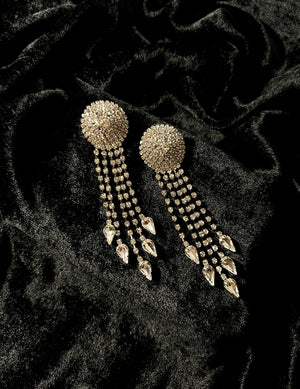 "Add some sparkle to your style with the Crystal Veil Earring. This beautiful earring will enhance any outfit and draw attention to your unique personality. A must-have in your collection. (Sparkle on with confidence!)"