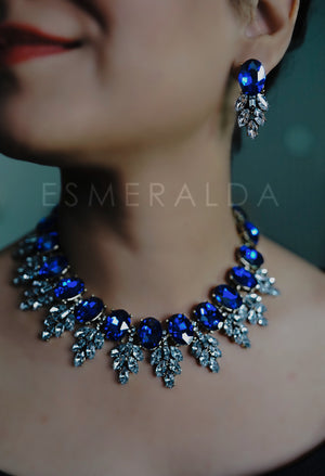 Light up the room and make every look elegant with our striking blue kehlani necklace and earrings set.