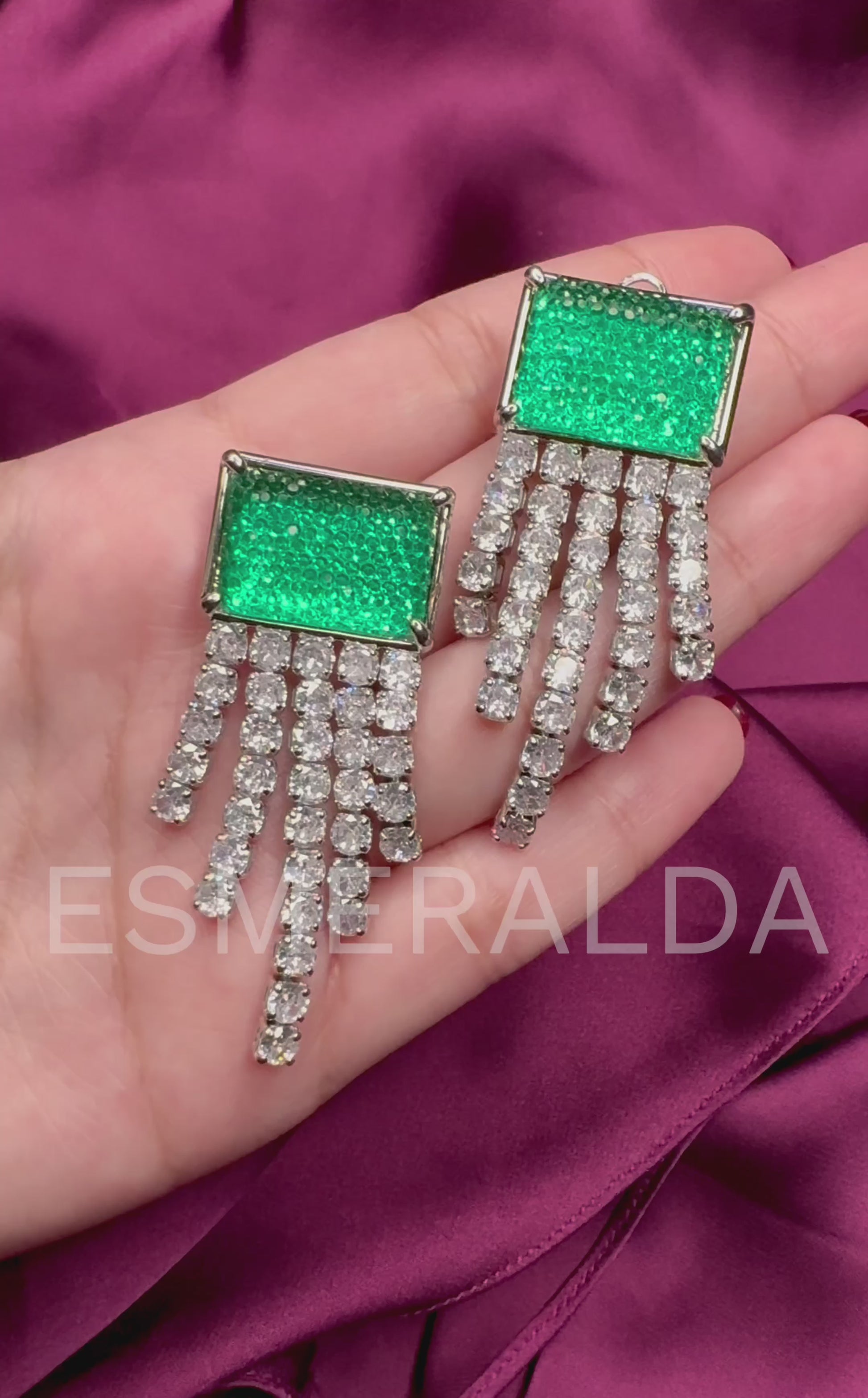 Meet our Luxe Bianca Earrings – the epitome of elegance and sparkle! 💎✨ With mesmerizing emerald hued stone and dazzling zircons, these beauties are ready to steal the spotlight. Let them sway and sparkle with every step you take, because who says you can’t be the center of attention?