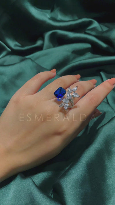Luxe Blue Cocktail Ring (Adjustable)