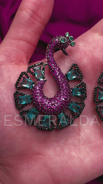 Step into a realm of timeless allure with our Swanessa Earrings. Embellished with glistening ruby and emerald-hued cubic zirconia, they encapsulate the essence of luxury and grace. Let their shimmering beauty elevate your ensemble to new heights of sophistication.