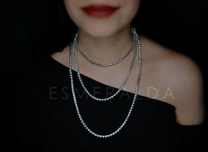 Exuding glamour, this exquisite tennis chain sits perfectly upon the décolleté or stacked up as a gorgeous bracelet!