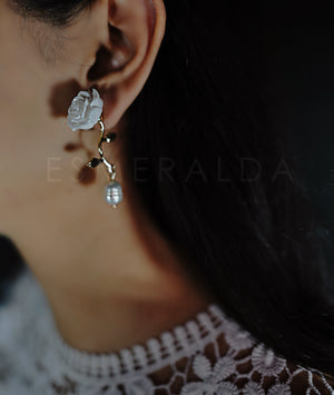 Featuring dainty white, pearl-drop roses, the Rosalba earrings are the perfect statement for your Sunday Brunch look!